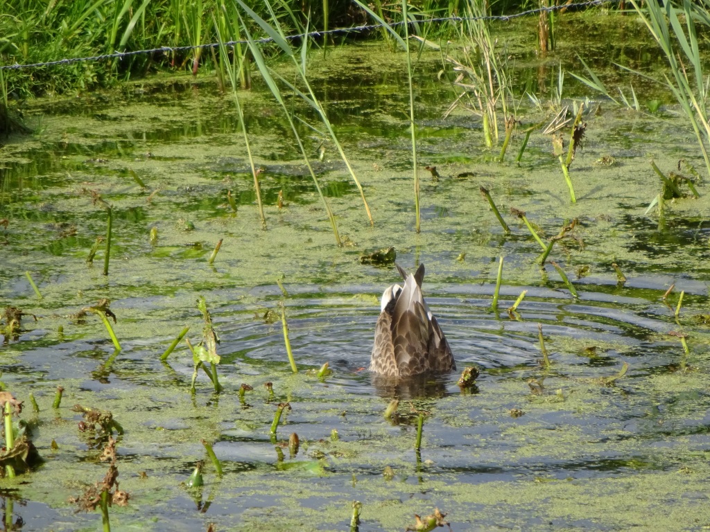 Op zijn kop in het water