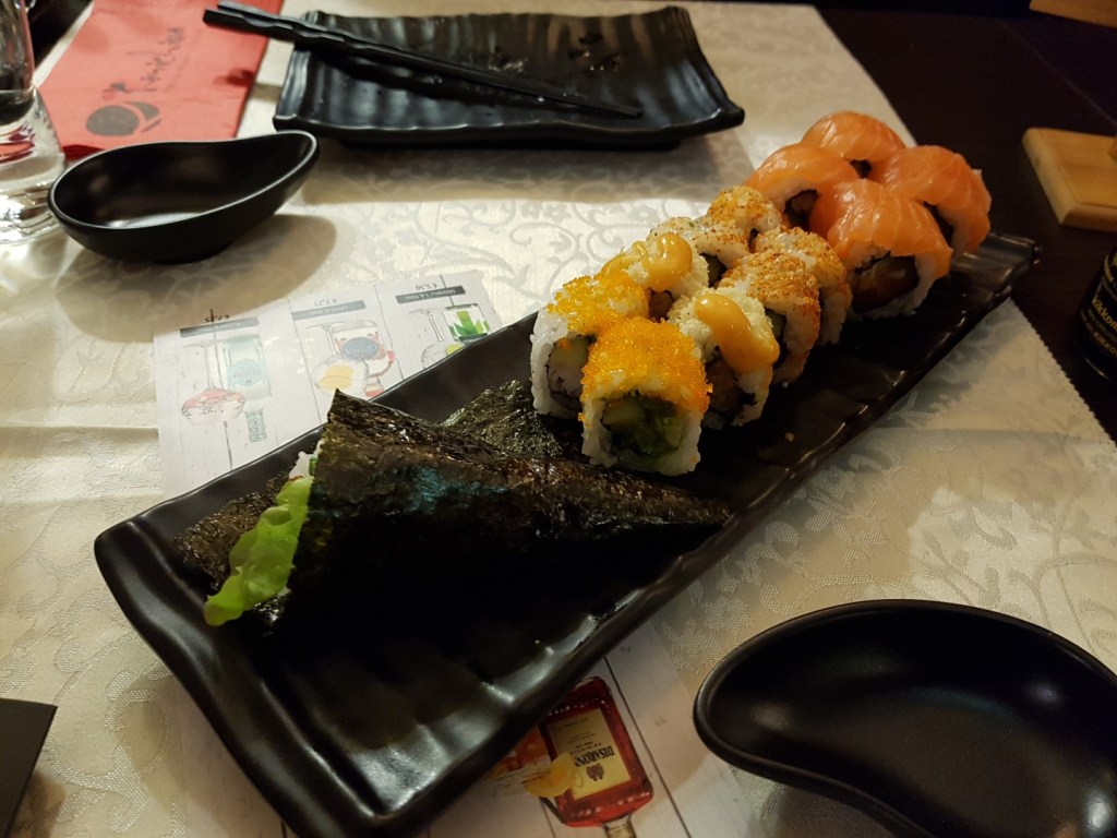 We hadden nog geen avondeten besproken, maar tien minuten later zaten we aan tafel bij het Hotel Restaurant Konbanwa, waar we genoten van overheerlijke Japanse sushi en grillhapjes en niet te vergeten van het toetjesbuffet.