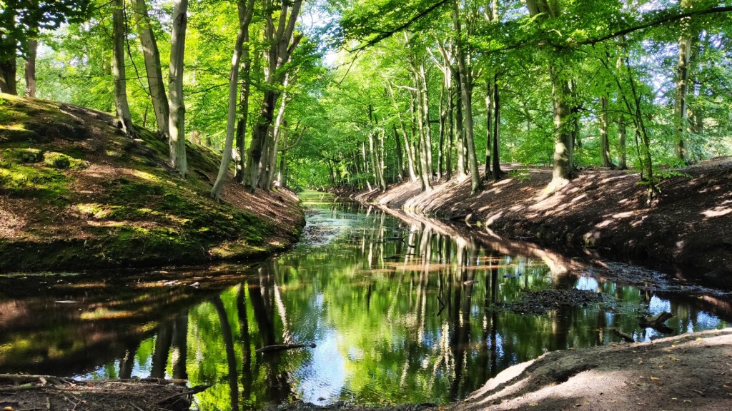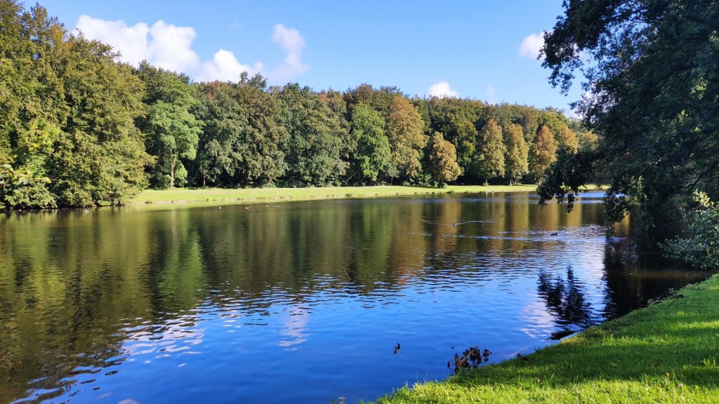 Het was een komen en gaan van sporters in het Haagse Bos. Op een veldje hief een groepje dames in een cirkel een Kettle Belt en in het klimbos ging een klein meisje over de klimtouwen. We gingen over de slingerpaden van het Haagse Bos, dat het oudste bos van Nederland is. Het maakt onderdeel uit van het Nationaal Park Hollandse Duin. We gingen over een bruggetje en langs het water. Bomen aan het water kregen al de eerste herfstkleuren. Het najaar was met de droge en warme zomer al vroeg ingezet.