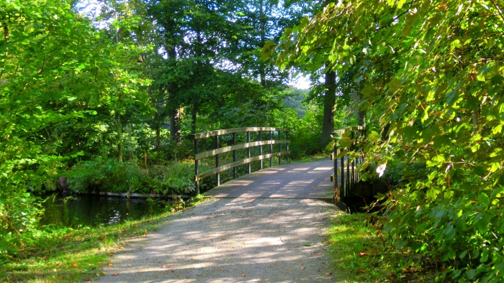 We lieten de fietspaden achter ons en konden weer wat relaxter wandelen over de voetpaden bij Landgoed Clingendael. We gingen over de sierlijke witte bruggen. Opeens hoorden we een immens geluid. Een zwaan was aan het landen, waarbij hij met zijn oranje poten naar voren het watervlak raakte. Hij schudde zijn grote witte vleugels uit en zwom gracieus verder door de kroost.