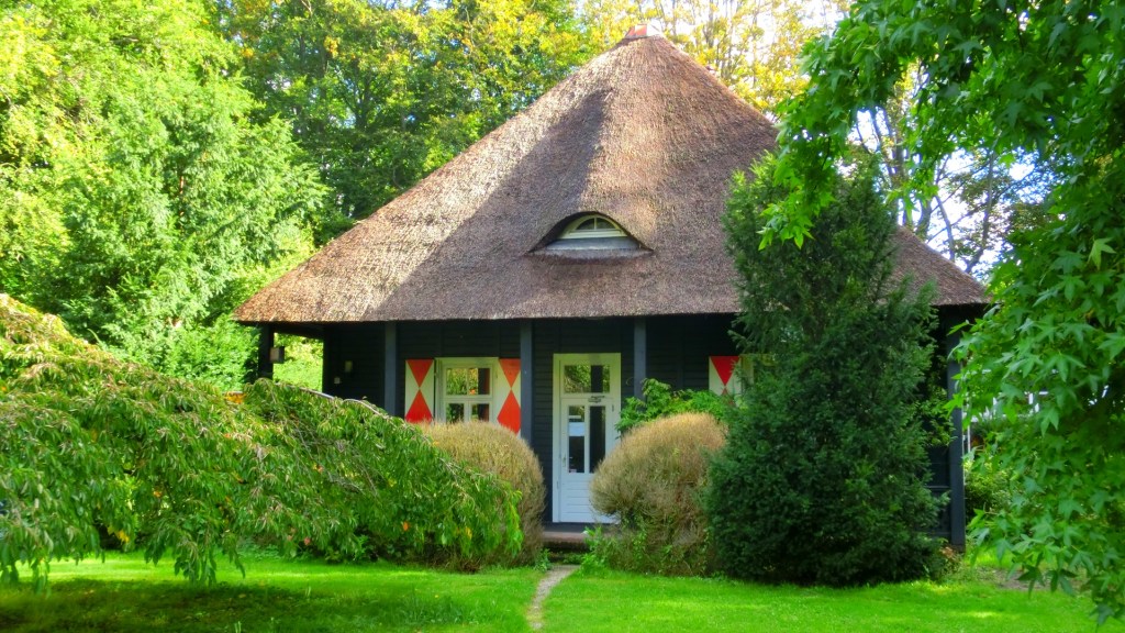 Zo rustig het in het park was zo druk was het bij het Theehuis IJgenweis. Het café-restaurant had het terras uitgebreid naar de overkant van het wandelpad. We gingen langs de gasten, die aan hun koffie nipten en hun vorkje in appeltaart prikten.