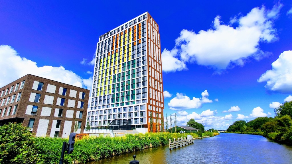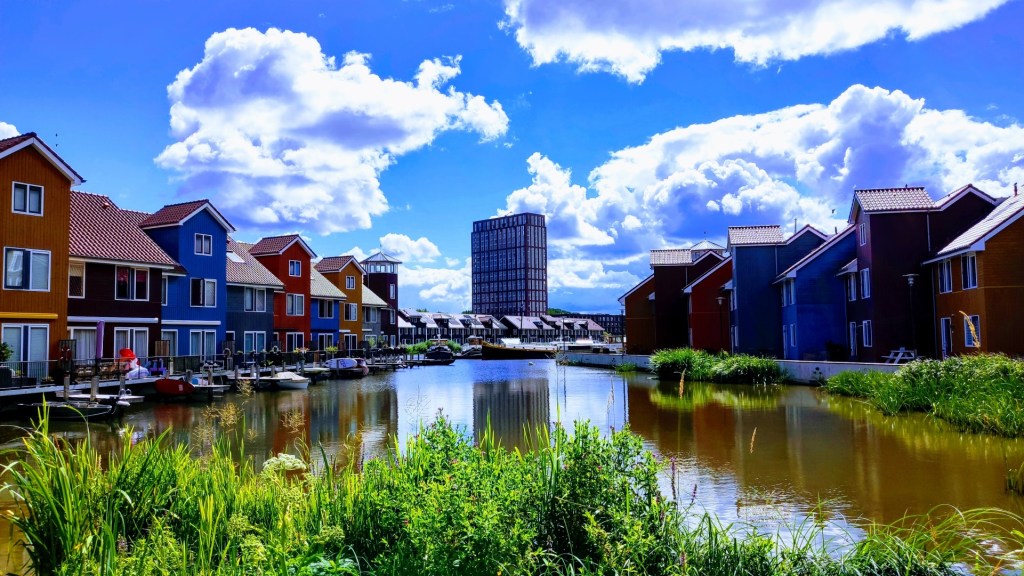 We stonden aan de rand van de stadswijk Reitdiephaven. De wijk met 300 woningen en appartementen in bonte kleuren rondom een haventje is er sinds 2008. We maakten een rondwandeling langs de kleurrijke boardwalk- en pierwoningen.