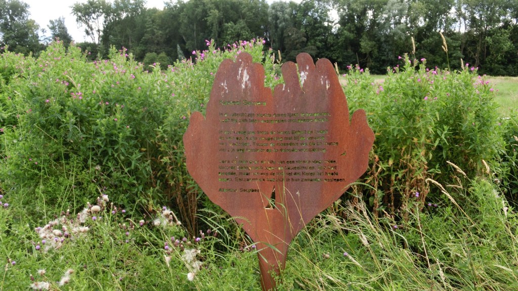 In dit gebied heeft archeologisch onderzoek plaatsgevonden en is sinds 1975 een beschermd ondergronds rijksmonument. Langs de route kwamen we stalen handen tegen met daarop gedichten, die je iets vertellen over de geschiedenis van het kasteel en het klooster.
