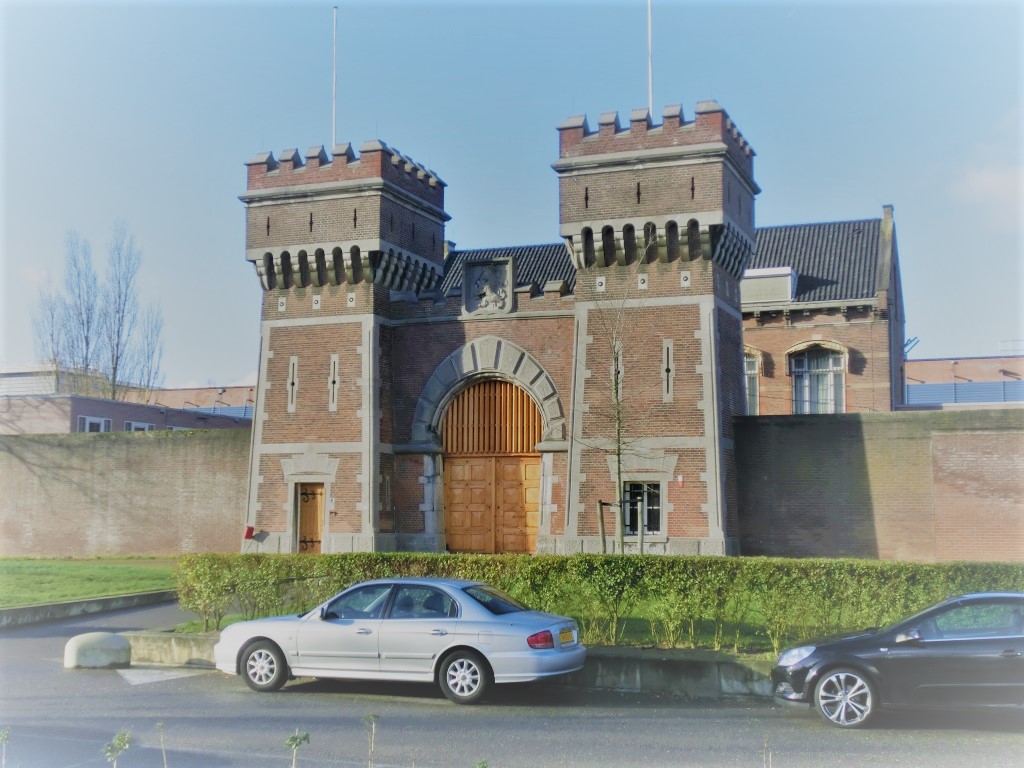 Vlakbij de verdwenen Hofpleinlijn komen we langs de oude monumentale toegangspoort van de Penitentiaire Inrichting Haaglanden. In de oorlogsjaren had deze gevangenis de bijnaam het Oranjehotel.