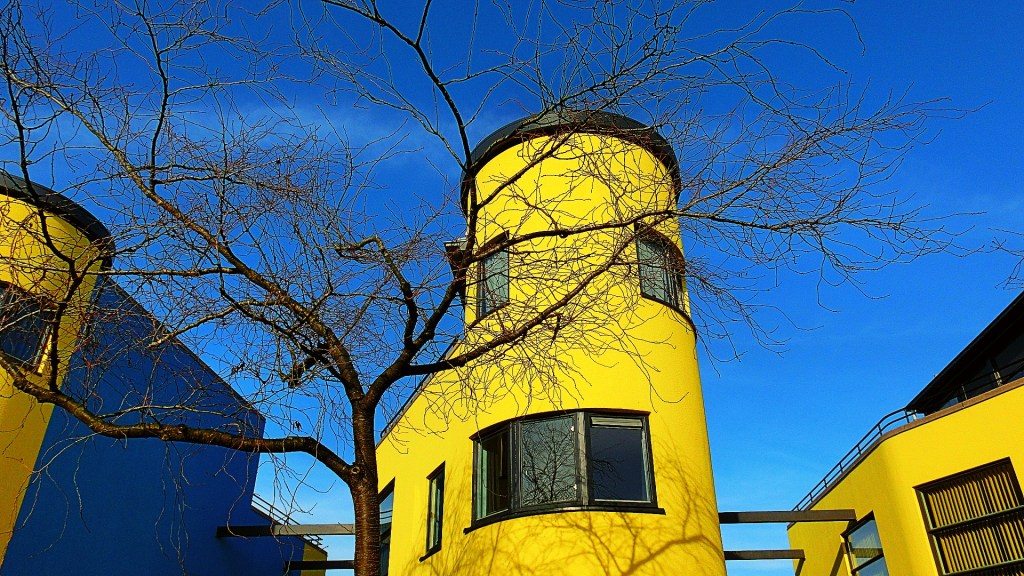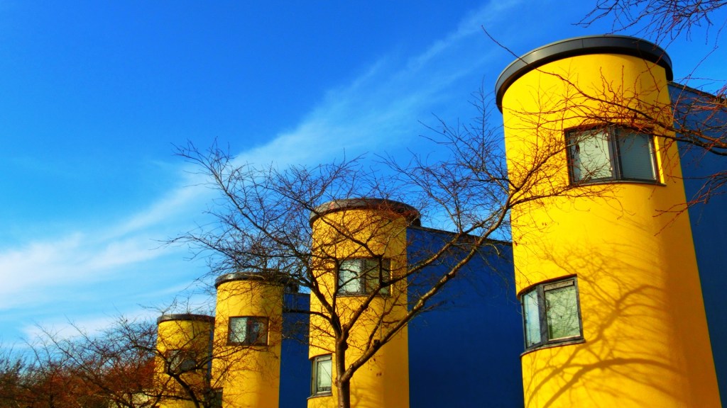 We bleven de Paletlaan volgen en sloegen de Chartreusestraat in met opvallend gele “Towerhouses” van het architectenbureau van architect Aldo van Eyck. Zijn schoonzoon Julian Wickham was projectarchitect van deze bijzondere woningen. We struinden tussen de gele torenhuizen door.