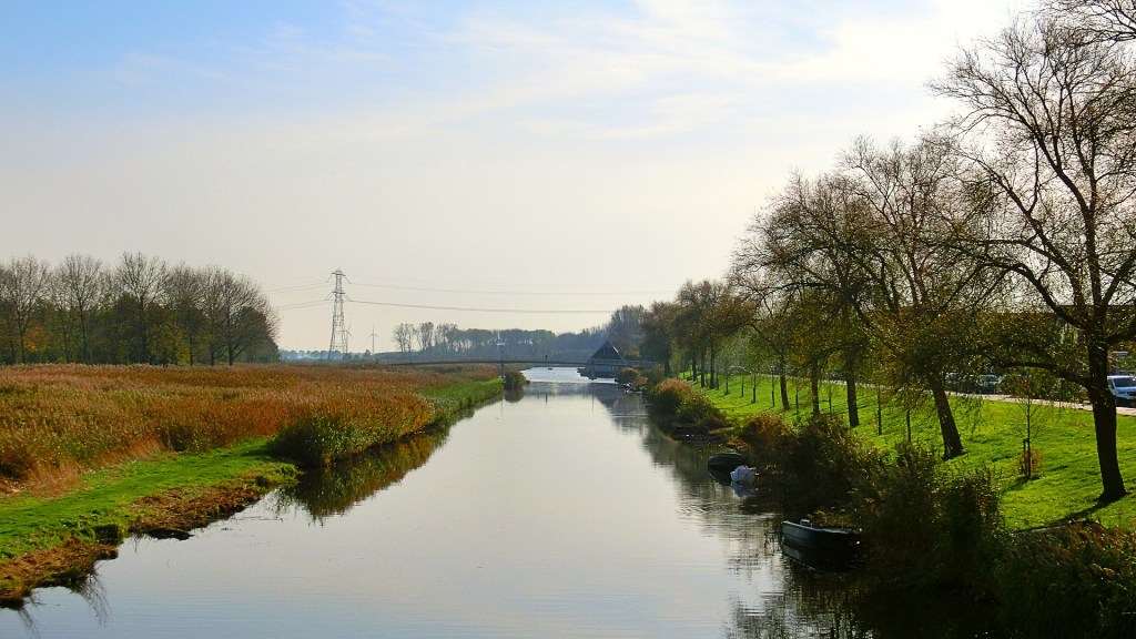 We verlieten het compacte winkelcentrum en liepen richting de Evenaar, een brede allee met bomen. Een tijdje liepen we langs deze brede laan. Aan de ene kant van de weg zagen we woonappartementen en aan de andere kant het groene Meridiaanpark.