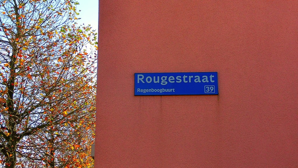 We wandelden een tijdje langs deze laan met villa’s in pasteltinten. Ik keek de Lilastraat in en zag rijen met woningen in de lilakleur. We sloegen de Rougestraat in met verschillende type woningen in rouge. Het was rustig op straat. Opvallend vond ik dat er in deze wijk weinig rekening was gehouden met de voetganger Aan weerskanten van de woonstraten was weinig of geen stoep aanwezig.