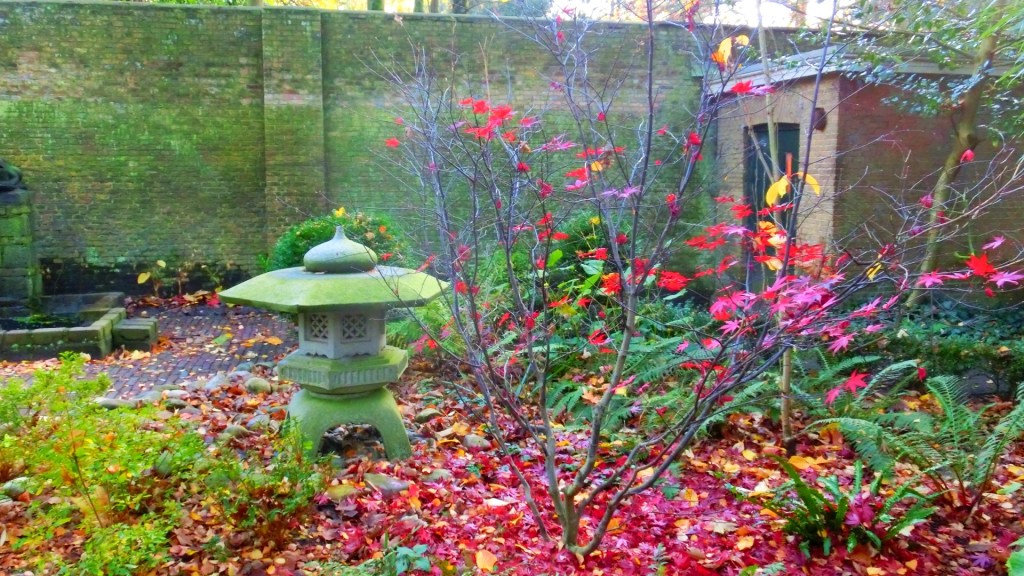 We staan even aan de steiger en kijken uit op de blikvanger van deze kleine stadstuin, de enorme Libanonceders. Deze reusachtige boom is één van de eerste bewoners van het plantsoen. We wandelen verder over de kronkelpaden en passeren een tuinmanswoning en een Japanse stenen lantaarn.