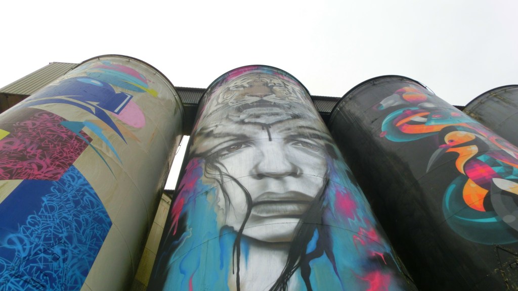 Vaak als ik in de trein richting Den Bosch zat, zag ik de enorme silo’s gedecoreerd met Street Art nabij de Verkadefabriek. Tijdens een lang weekend Den Bosch besloten we deze kunstwerken aan de Tramkade van dichtbij te bekijken.