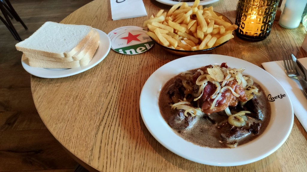 Na een meer dan een uur te hebben gevaren, waren we wel toe aan een lunch. We streken neer bij Loetje Kop van Zuid. Loetje, bekend van de ossenhaasbiefstuk, vond je vroeger alleen in Amsterdam. Na veertig jaar Loetje, dat begon als een biljartcafé in Amsterdam, is in Arnhem alweer het 25ste restaurant geopend. Uiteraard gingen we ook voor de beroemde biefstuk van de kaart.