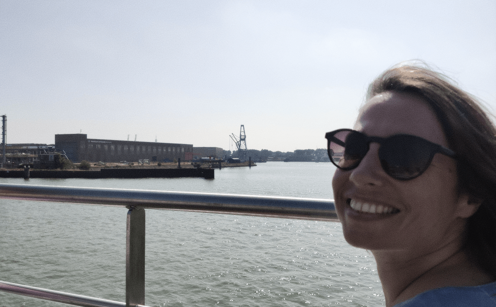 Het was een tour van 75 minuten waar we langs de architectonische hoogtepunten van Rotterdam voeren met imposante gebouwen als het ventilatiegebouw van de Maastunnel, de Euromast en de nieuwe architectuur van het Lloydkwartier. We zaten op een steenworpafstand van Schiedam en zagen de molens, die gemout graan maalden voor de branders, die moutwijn stookten voor de jeneverindustrie.