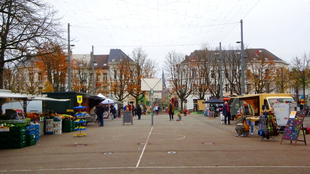 We liepen door naar het centrum van de wijk, de Dageraadplaats, dat was omringd door restaurants en cafés. Op het plein, dat echt een ontmoetingsplek is, was een kleine markt en speelden kinderen basketbal.
