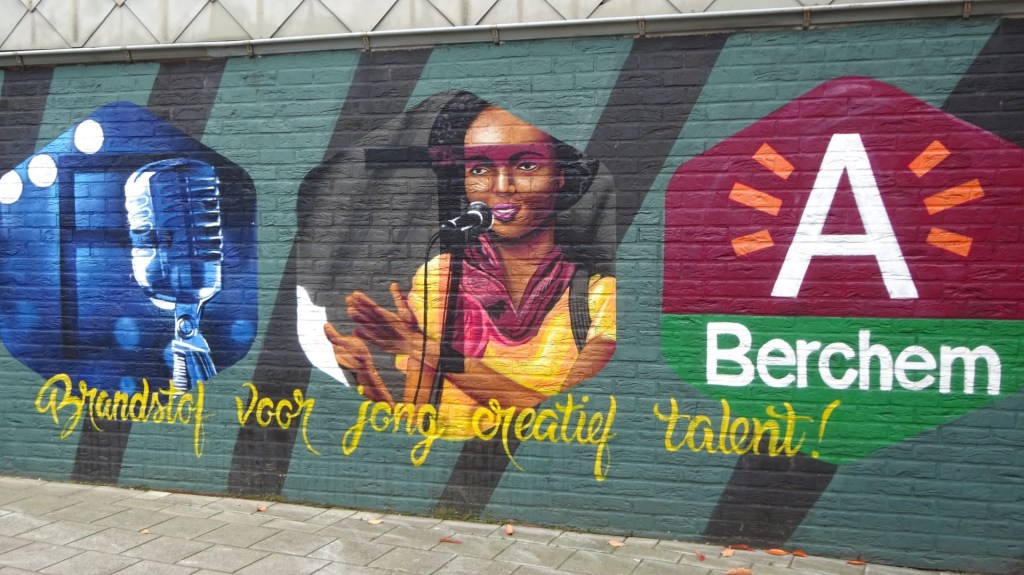 We startten onze wandeling bij station Antwerpen Berchem. Het station staat bekend om zijn StreetArt. Rondom het treinstation kwamen we al een aantal van deze werken tegen. Voor de liefhebbers van deze graffitikunst is een route uitgestippeld om de vele StreetArt werken te bekijken.