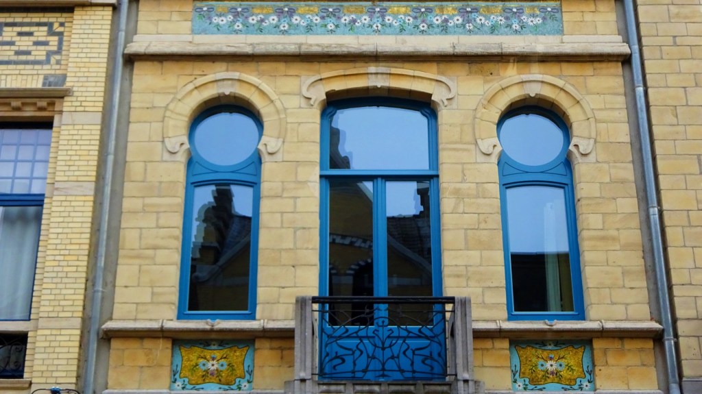 Op het kruispunt van de Generaal van Merlenstraat en de Waterloostraat stonden we oog in oog met het ensemble van vier hoekhuizen herfst, winter, zomer en lente van de architect Joseph Bascourt. Hij bouwde dit meesterwerk in Art nouveau stijl in 1899. Het was niet eenvoudig om de schoonheid van deze panden in een foto te vatten.