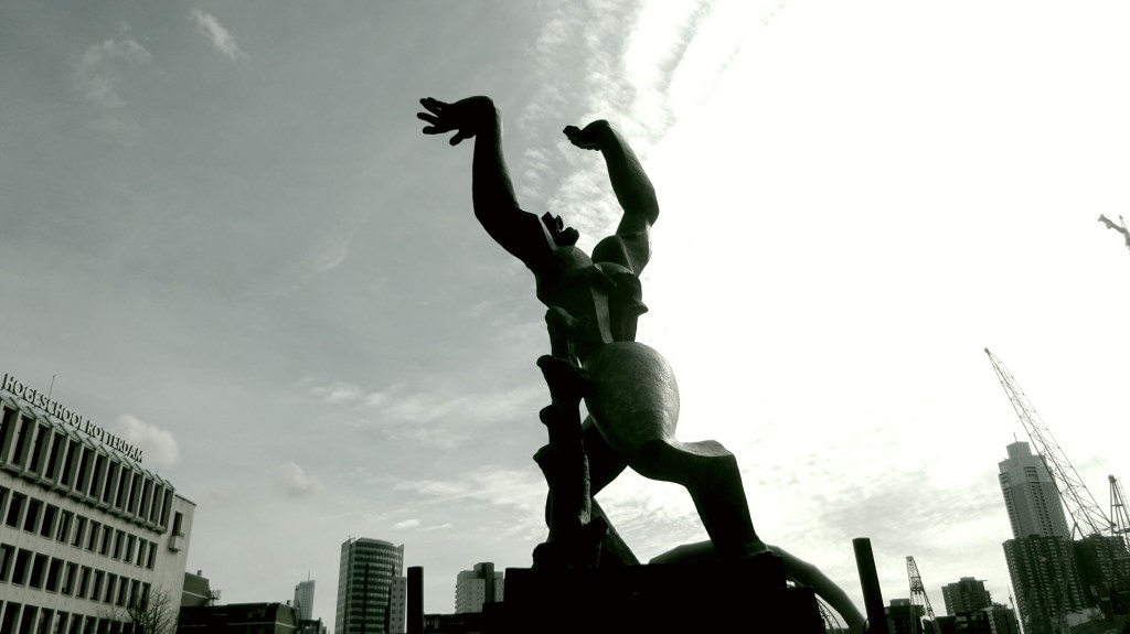 Mijn route gaat over de altijd imposante Erasmusbrug. Op 10 april aanstaande gaan weer tienduizenden hardlopers over deze brug om meer dan 42 kilometer hardlopend af te leggen.