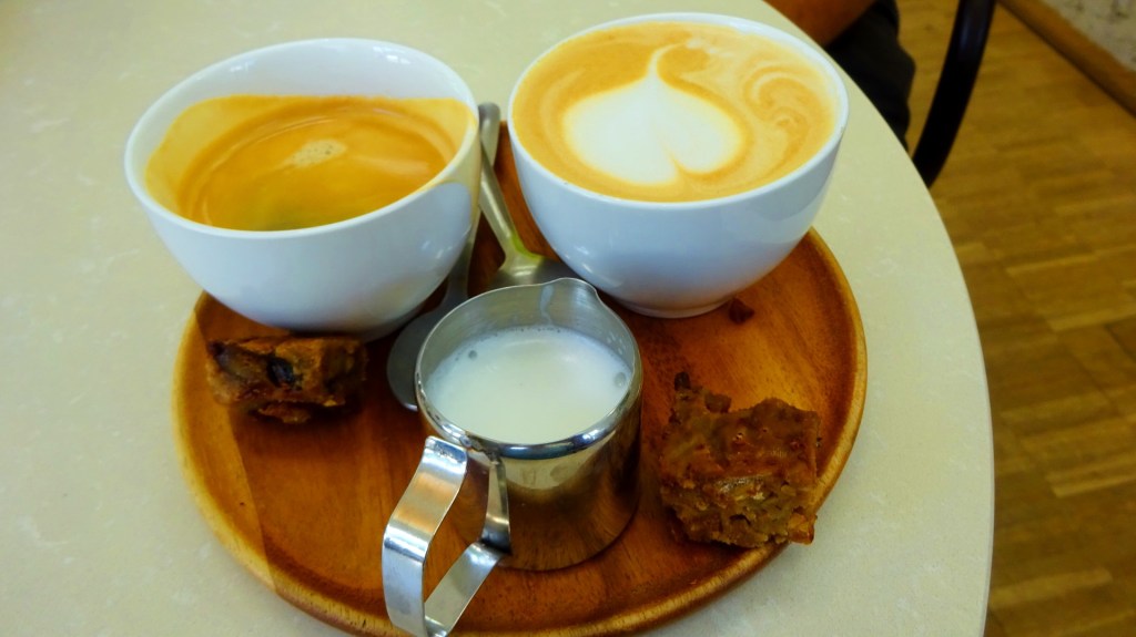 Tijdens een wandeling neem ik een break bij Nives. Het terras voor de monumentale oranjerie is gevuld met jonge Antwerpenaren, die nippen aan een zelfgemaakte limonade of koffie. De obers gekleed in bakkerschorten brengen tosti’s rond van zelfgebakken zuurdesembrood en zelfgemaakte bananenbrood. Ik kies voor een tafeltje binnen. Ondanks dat alle tafeltjes bezet zijn straalt de witte ruimte met hoog plafond rust uit. Relaxte muziek draait op de achtergrond. In de open keuken wordt brood gebakken en lunch klaargemaakt. Ik bestel een koffie en een cappuccino, dat al snel wordt gebracht met een zelfgemaakt stukje cake.