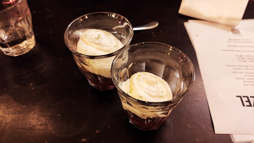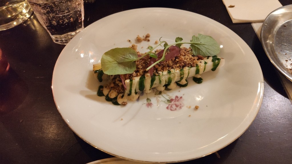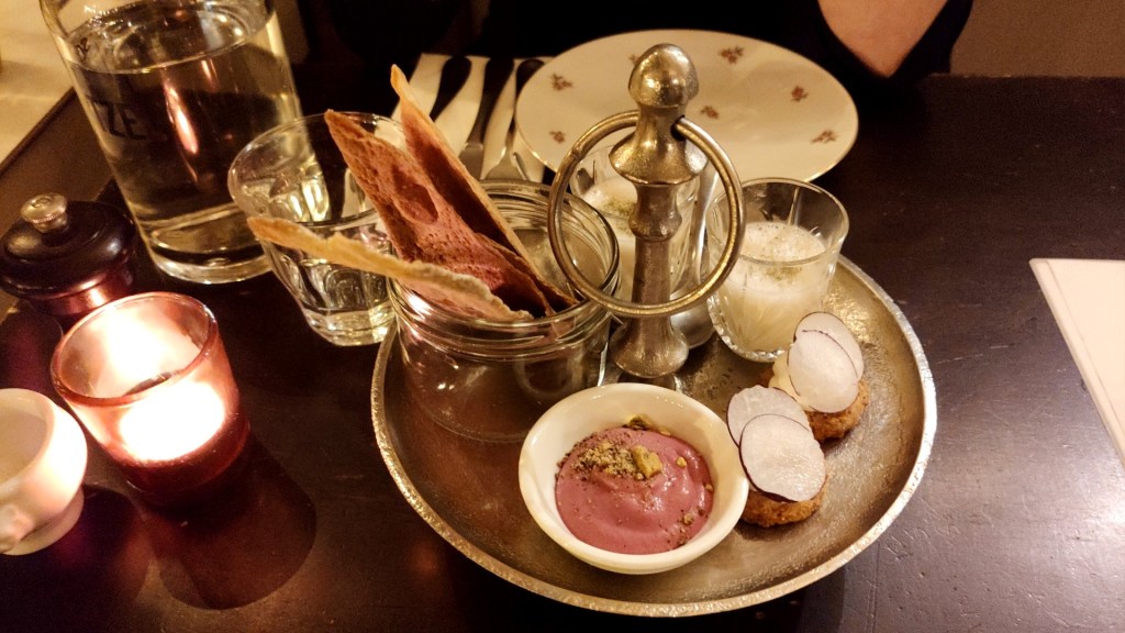 Als je een tafeltje bij Schnitzel wilt bemachtigen, is het verstandig om van tevoren te reserveren. In het kleine, gezellige restaurant neem ik plaats aan één van de paar tafels. Ze serveren een vijf- en zevengangenmenu.