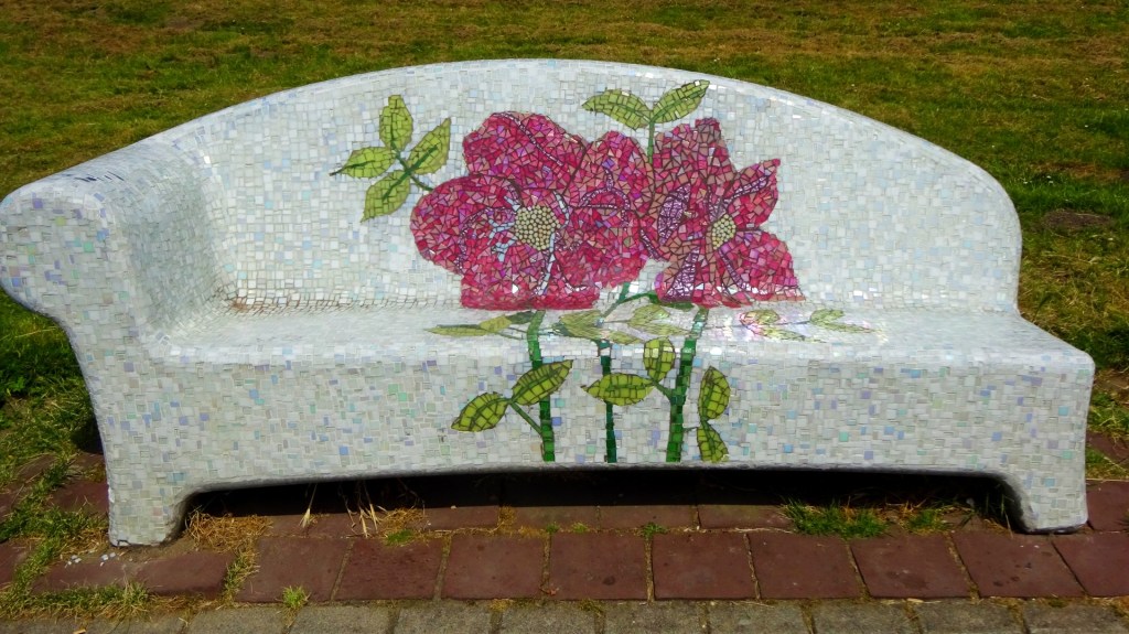Zo vind je er nog follies, groene gebouwtjes met een opvallende vorm. Ik neem even een kijkje in het rosarium, waar een groot deel van de rozen in bloei staan.