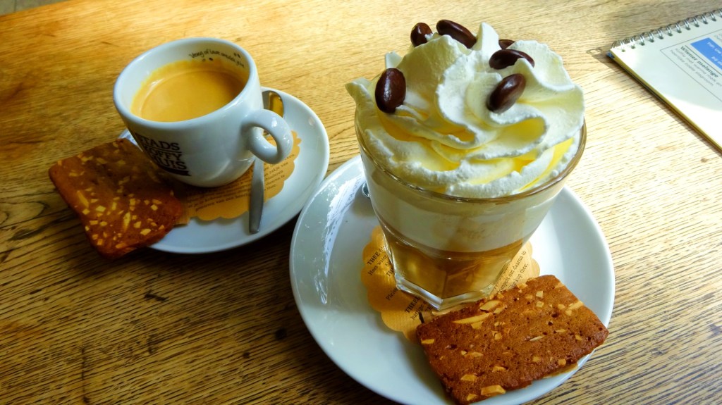 Het koffiehuis is al 50 jaar een begrip aan de Oude Delft. Zowel binnen als buiten kun je terecht voor een ontbijtje, één van hun prijswinnende broodjes of gewoon een pannenkoek. Ik kies een tafeltje aan het raam. Snel staat de overheerlijke Wienermelange met slagroom voor me op de houten tafel.