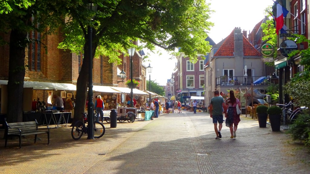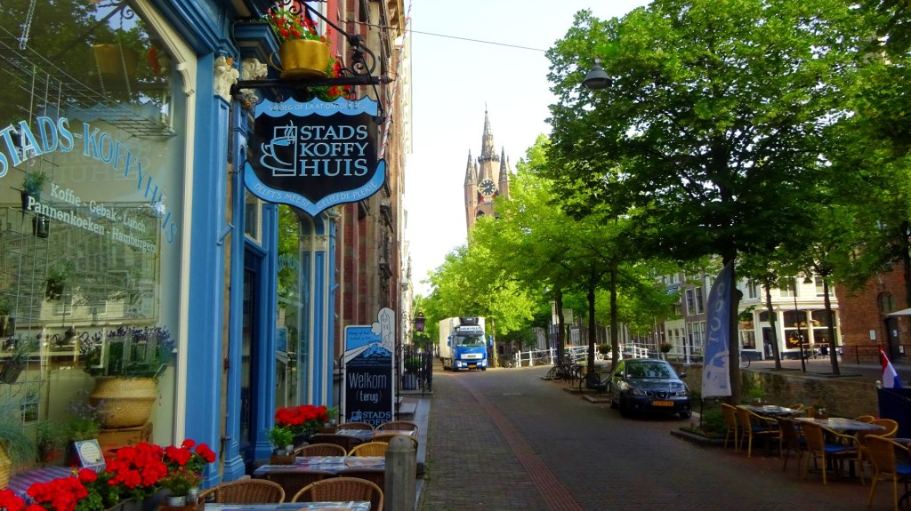 Delft ontwaakt. Ik wandel door het oude centrum in waar antiekhandelaren hun waren uitstallen in de kraampjes aan de grachten. De deur van het Stads-Koffyhuis is al open. Alhoewel de keuken nog gesloten is kan ik wel terecht voor koffie.