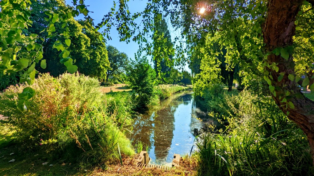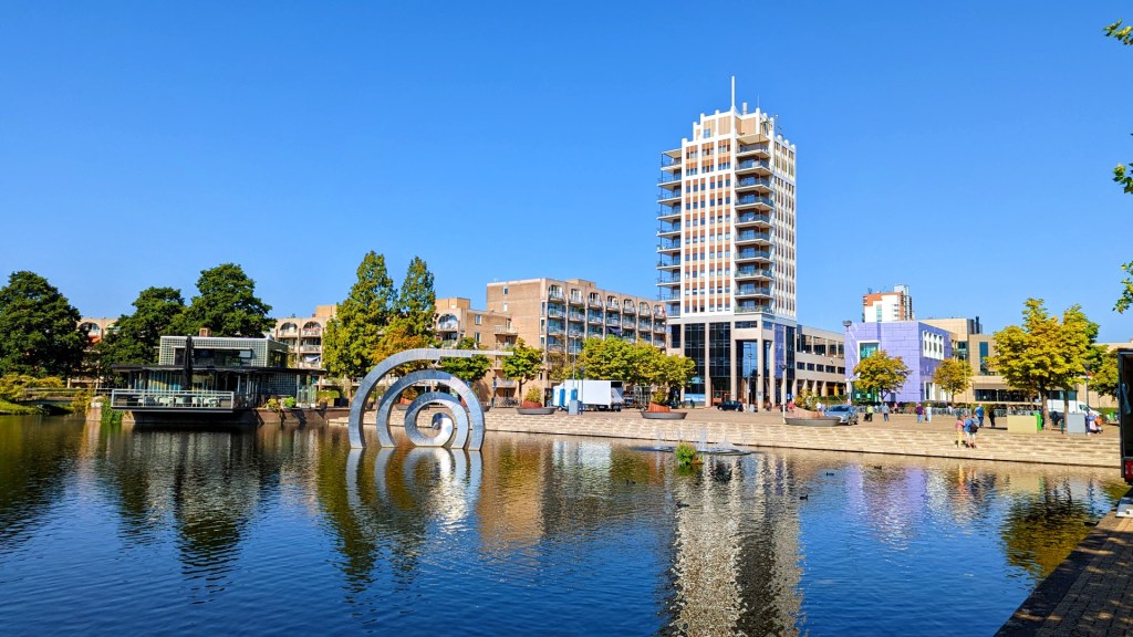De kijkpunten tijdens de route zitten erop en ik wandel naar het beginpunt van de wandeling. Ik loop via de pittoreske Delftsewallen richting het centrum van Zoetermeer en passeer de warenmarkt aan het water. Vanaf daar zie ik de fraaie skyline van de Zoetermeerse Benedenstad.