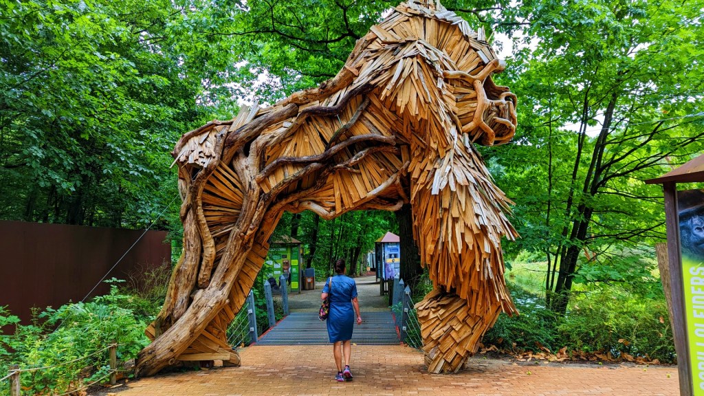 Het is alweer tien jaar geleden dat ik dierentuin de Apenheul bezocht. Ik pak vanaf het centrum de bus naar het apenpark. De buschauffeur zet me bij de ingang van de Apenheul uit en vandaar maak ik een korte wandeling door het Stadspark Berg & Bos voordat ik de echte entree van het park bereik.