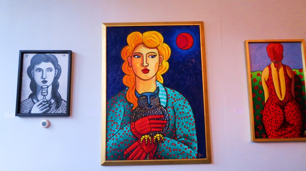 Ik bekijk een aantal tentoonstellingen, waaronder de expositie van schilderijen, tekeningen en beeldhouwwerken van kunstenares Lotti van der Gaag.