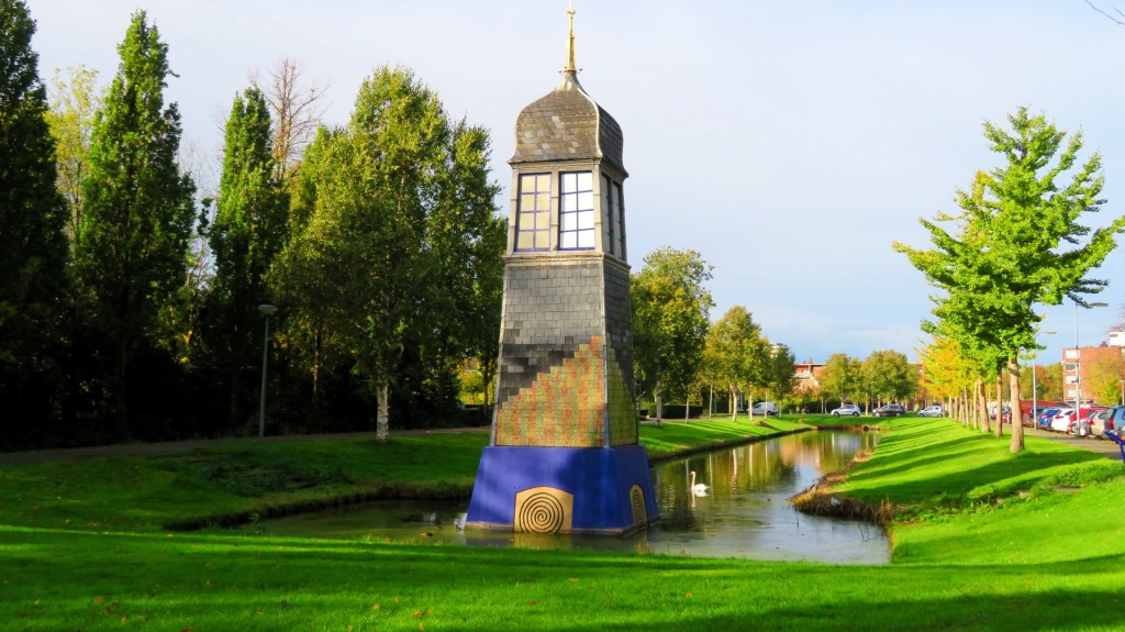 Ooit stond haar werk bij het Leids Universiteit Medisch Centrum en het torentje heeft nu zijn laatste rustplaats gevonden in het Strickledepark. Ik wandel over de smalle paden van het groen en kijk eens wat een prachtig doorkijkje!