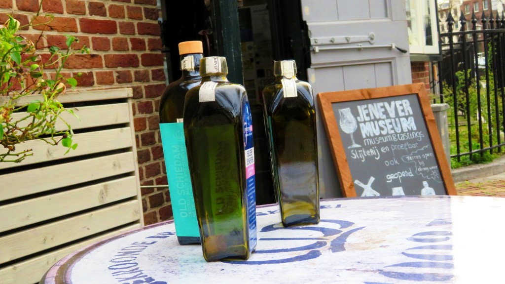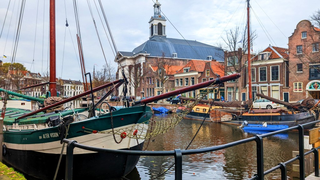 Ik wandel over de kade met de decoratieve gietijzeren lantaarns. In het water ligt een aantal monumentale schepen. Aan de overkant zie ik het Jenevermuseum en de majestueuze Havenkerk.