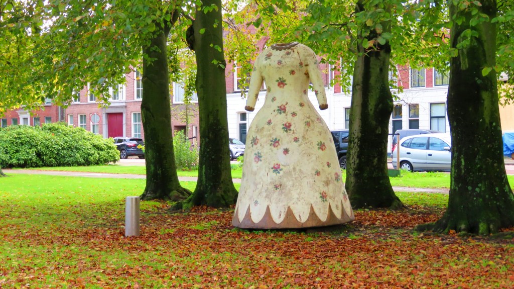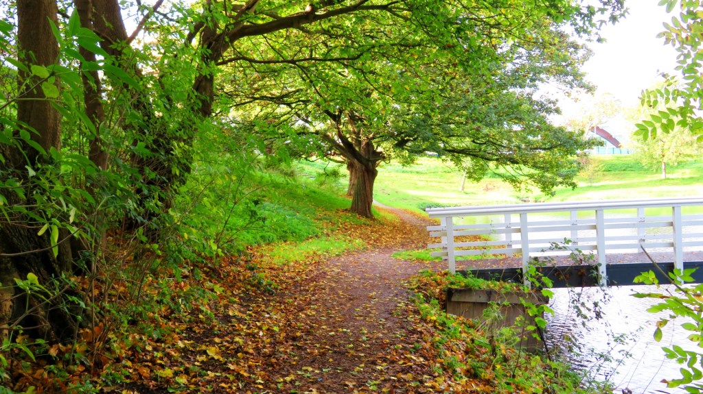 Schiedam bezit een groot aantal parken waaronder het kleine Strickledepark. De bomen staan hier ook in herfsttooi en mijn schoenen sloffen door de droge bladeren. Midden in het park zie ik het kunstwerk “het Torentje” van kunstenares Yvonne Koopmans.