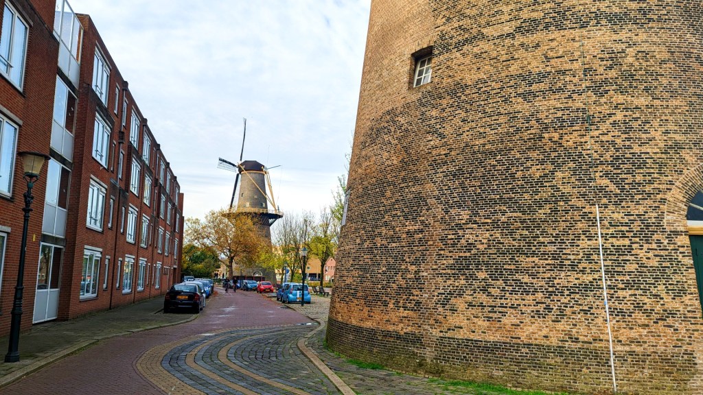 Ik passeer de Molen de Vrijheid en in de verte zie ik Molen de Noord, één van de hoogste molens ter wereld. Vroeger maalde deze reus mout voor de branderij. In het begin van de twintigste eeuw maalde hij voor de veevoerindustrie en voor de bakkers.