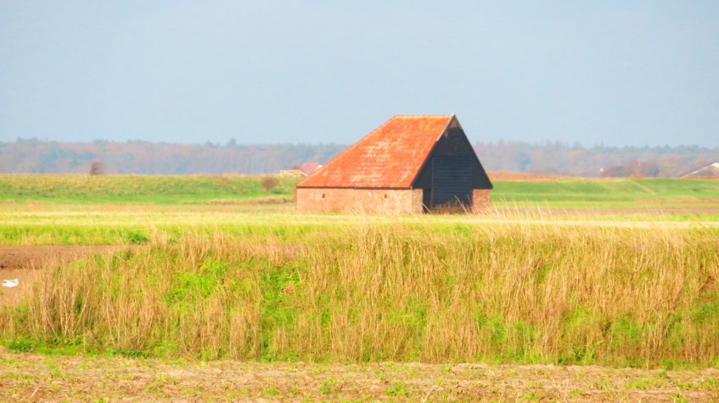Ik passeer een halve schuur, een schapenboet. Deze schuren met een asymmetrische vorm zijn karakteristiek voor het Texelse landschap. Ze worden gebruikt voor hooi voor de schapen. In de vorige eeuw stonden ruim honderd schapenboeten op Texel. Nu zijn er nog zo’n zeventig schuren over. Een groot deel daarvan is Rijksmonument. Ik loop nog een tijdje over het grindpad tussen tuinwallen.