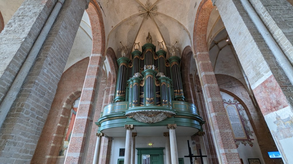 Ik loop vervolgens langs de Lebuinuskerk, een prachtige hallenkerk, die dateert uit de 11e eeuw. Het grote plein was vroeger een kerkhof dat in 1664 is geruimd. Ik blik even binnen bij de kerk en zet het fraaie orgel op de foto.