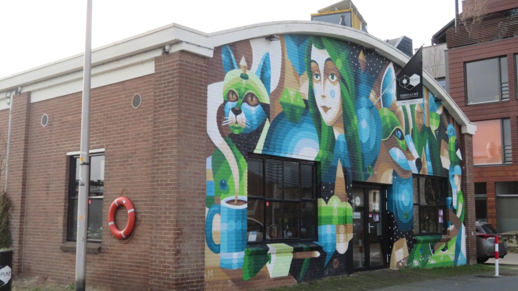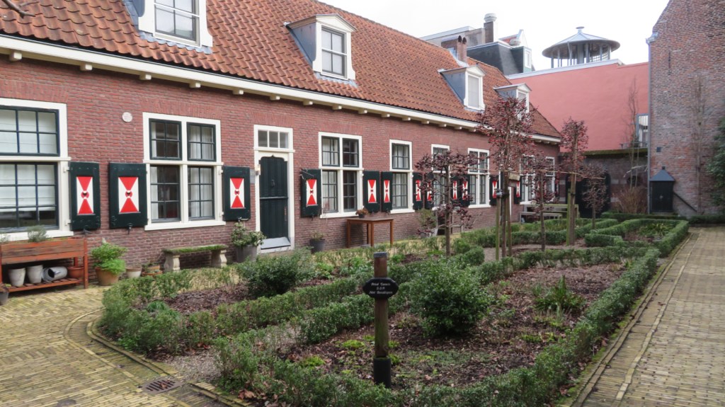 Vlakbij bij de Street Art ligt het historische Jordenshof. Het hof is in 1644 gesticht door Joachim Keyzer en in 1865 overgebracht naar deze plek. Het hofje is in de jaren dertig vernieuwd door de architect Knuttel. Ik loop even het schattige hofje in waar de huizen rood met witte luiken hebben.