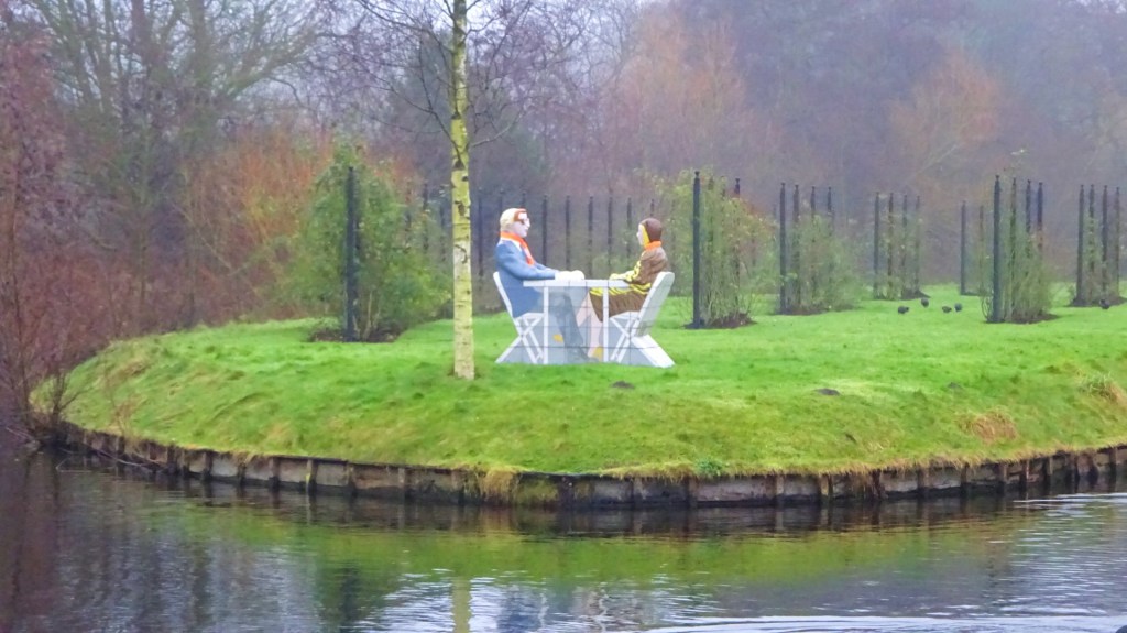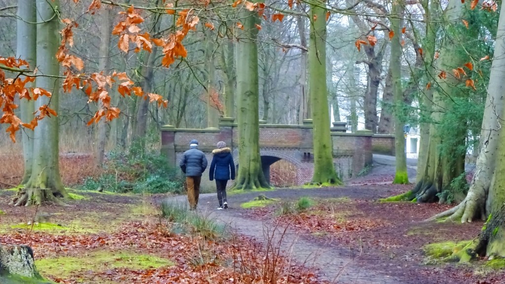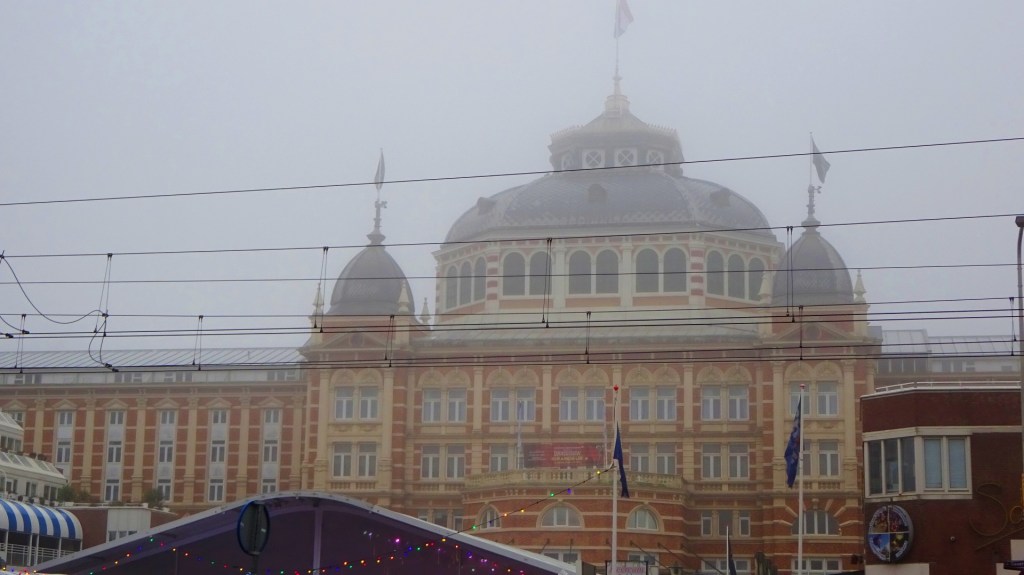 Ik start bij het Kurhaus, gehuld in een dichte mist. Mijn eerste stop is het Westbroekpark, waar het nog rustig en sereen is. Ik passeer een fraai kunstwerk “het gesprek” van kunstenares Berry Holslag. Op het gras scharrelen Canadese ganzen. Ik wandel door naar het centrum van Den Haag.