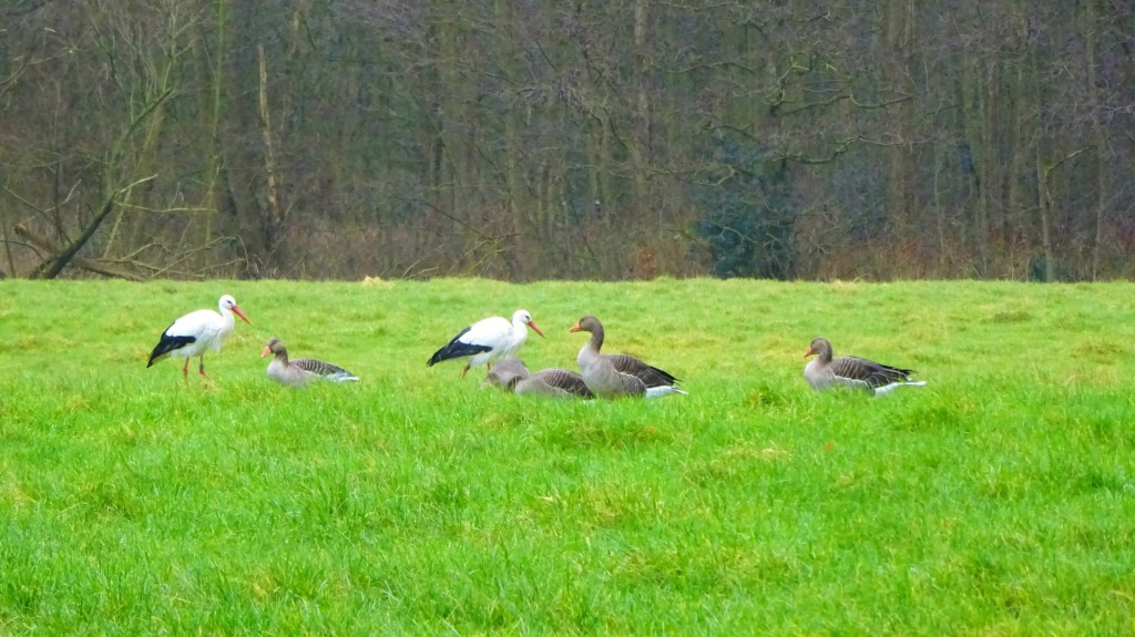 Het is een waar vogelparadijs hier, met zwanen en ooievaars, die rondzwemmen in de slootjes en grashoppen op de weilanden. Na het verlaten van het landgoed, kom ik door de chique wijk Marlot met zijn fraaie architectuur.