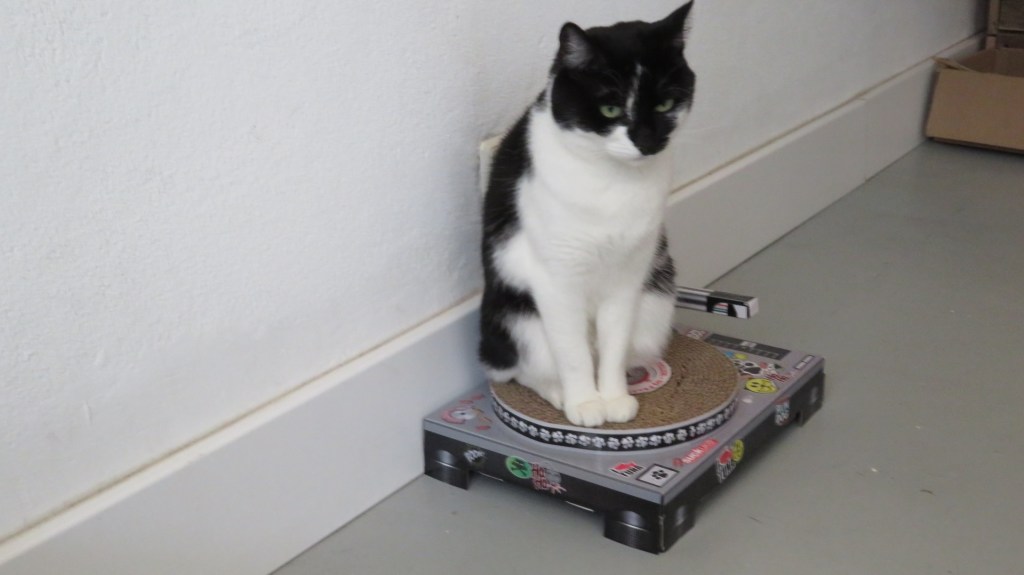 Ik wandel het oude centrum in, waar ik even over de Oude gracht kom en uitzicht heb op de Domtoren, die momenteel in de steigers staat. Ik wandel door de gezellige Twijnstraat met vele boetiekjes en speciaalzaken. Bij het kattencafé “Katenbakkie” kijk ik even binnen. De zwart witte kat, die op een kartonnen pick-up zit, geef ik een aaitje.