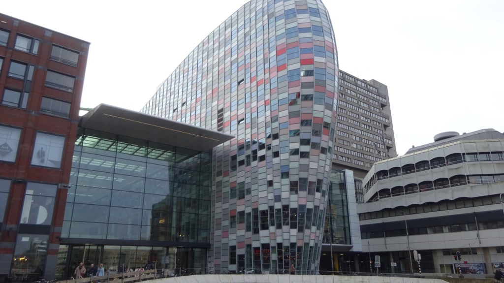Vlakbij het startpunt van de wandeling kom ik langs een echte blikvanger, het Poortgebouw, dat is ontworpen door het Amerikaans architectenbureau Stir Architecture. Het is een combinatie van wonen en werken en heeft met strakke lijnen en grote ramen een moderne uitstraling. Ik wandel door Hoog Catherijne. Het is nog vrij rustig in de morgen. Ik loop door richting het Centraal Station van Utrecht.