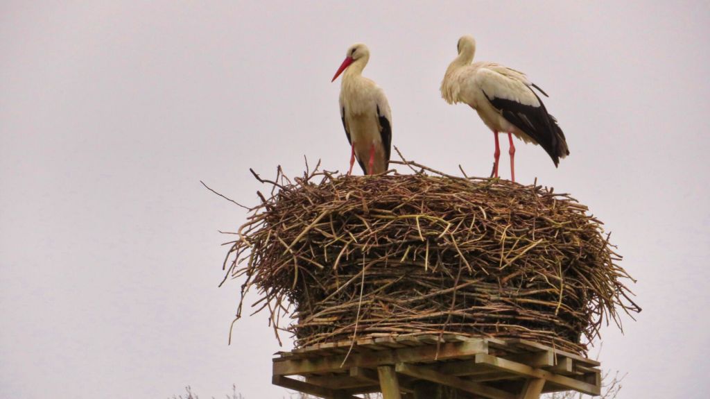 Na een tijdje loop ik de groene oase van de Leidse Hout in, uit 1931. Het is een heerlijke plek om te wandelen en te genieten van de natuur. Ik zie twee ooievaars op hun nestpaal, die druk bezig zijn met de begroetingsceremonie.