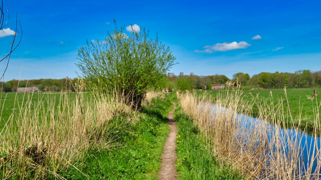 Onderweg heb ik magische doorkijkjes naar weilanden, waar koeien grazen. In het water zie ik gevlochten eendenkooien en ik wandel over diverse bruggetjes en over smalle paadjes tussen knotwilgen.