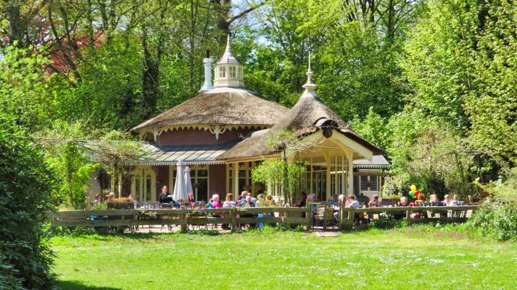 Aan het eind van mijn wandeling kom ik bij het Theepaviljoen De Horsten. Het terras zit vol en dat is niet gek met dit stralende lenteweer. Het theehuis dateert al uit 1863. Prins Frederik liet het bouwen als jachthuis. Op de muren zijn nog steeds jachttrofeeën te zien en vroeger vonden diverse jachtgilden hier een onderkomen.