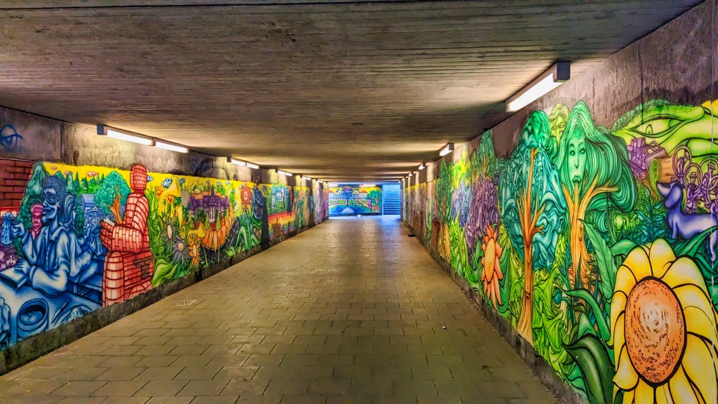 Onderweg kom ik nog door de Dom-Pedro-Straße-tunnel, die kunstenaar Martin Blumöhr transformeerde in een vrolijk kunstwerk. Ook Slot Nymphenburg heeft een plek gekregen op de betonnen muren.