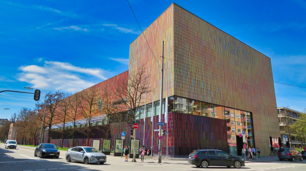 Ik wandel door naar het Museum Brandhorst, dat is gehuisvest in een gebouw bestaande uit gekleurde keramische staafjes.