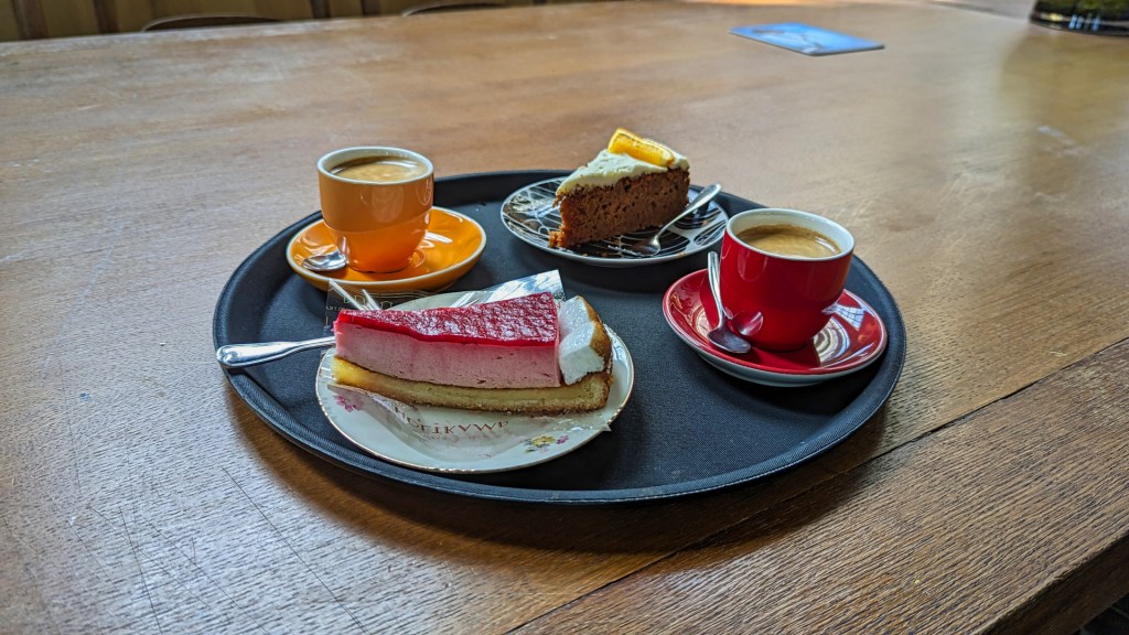 Ik geniet van mijn koffie met een heerlijk stuk taart van Holtkamp en maak een rondje door de kerk met het prachtige plafond.