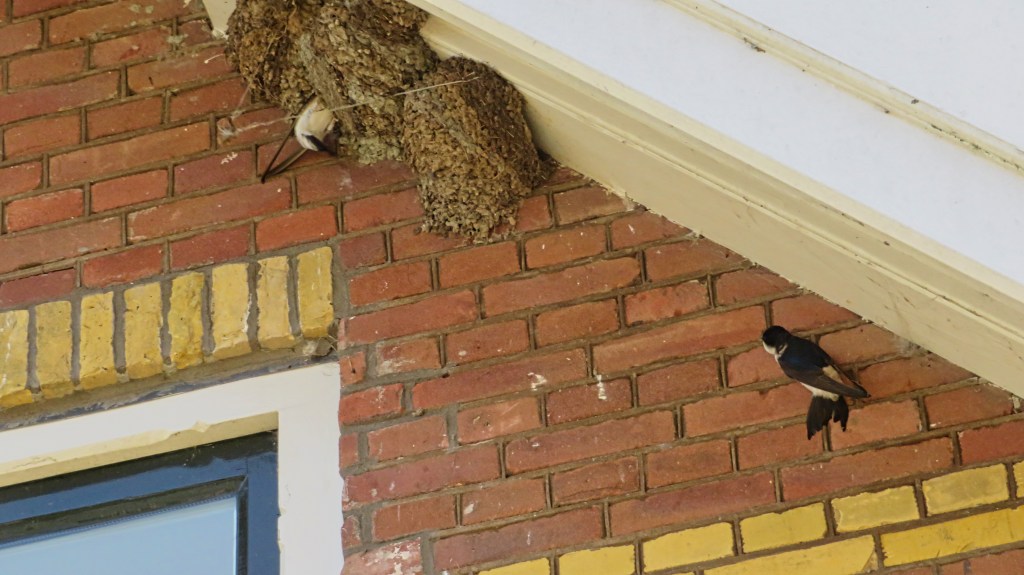 Bij een houten huis is het een komen en gaan van huiszwaluwen. Als ik goed kijk zie ik in de nok van het huis een zwaluwnest. Ik maak een rondje door het fraaie Ransdorp.