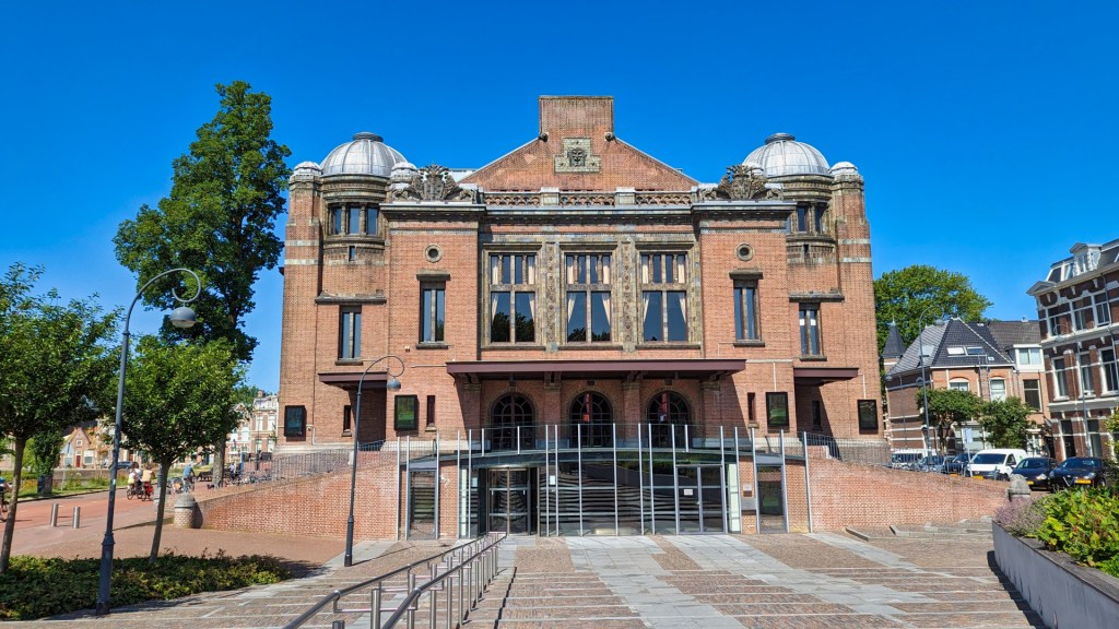 Ik passeer de Stadsschouwburg Haarlem. Het gebouw is een perfect voorbeeld van een “Symbiose van oud en nieuw”. Aan de voorkant zie ik het gerenoveerde oude gebouw.