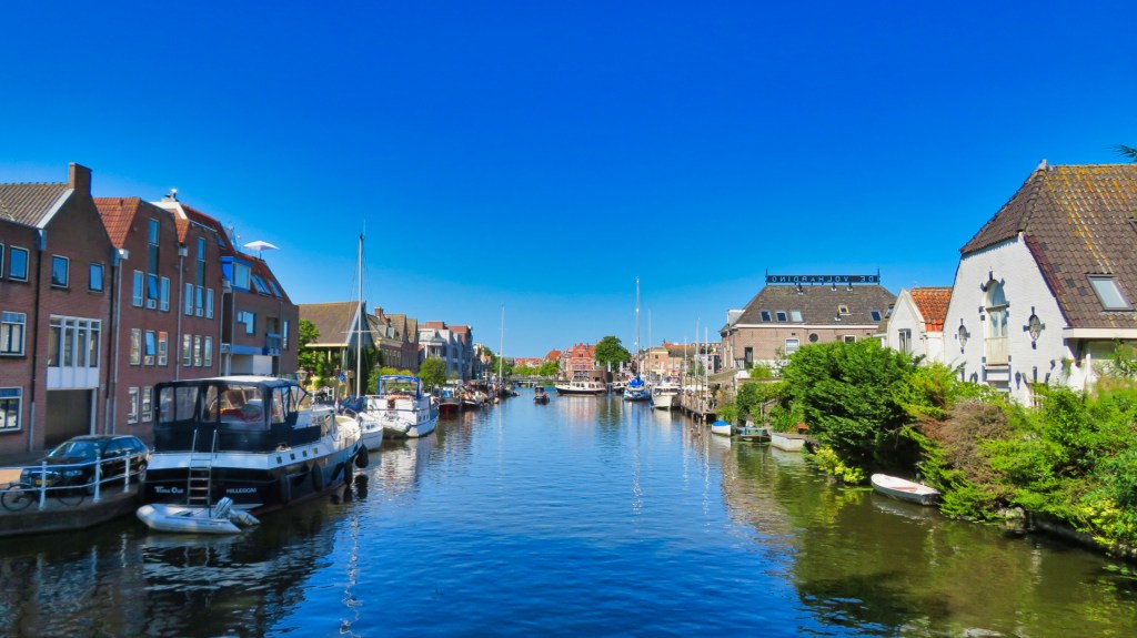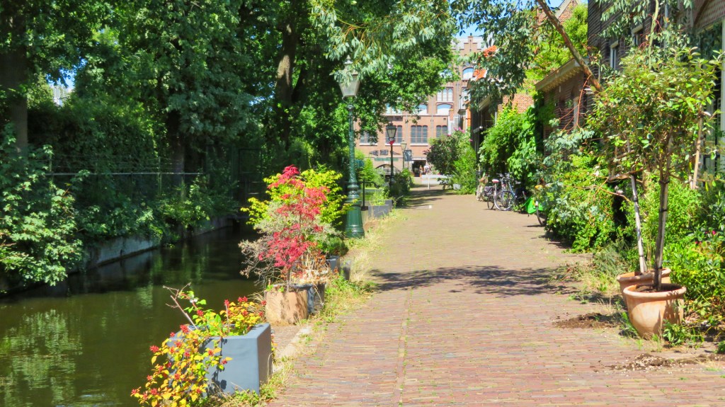 Ik steek de Doezastraat over en wandel over de Boisotkade, waar ik een fraai uitzicht heb op een betoverende gracht.