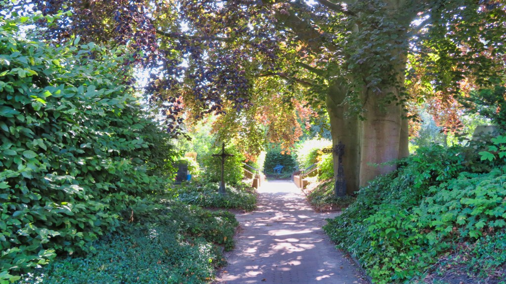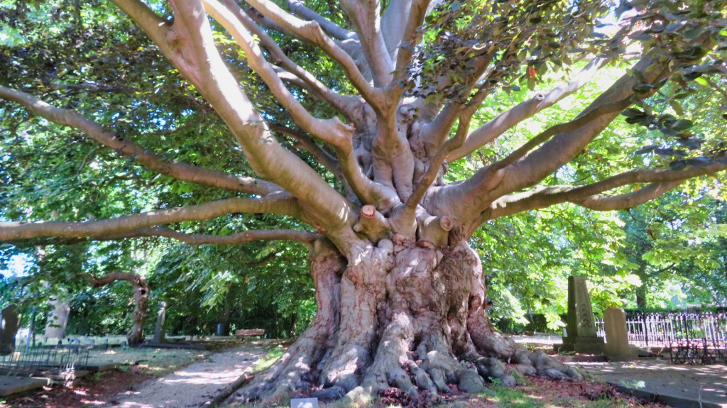 Ik wandel over de prachtige begraafplaats en laat me betoveren door de immense bomen, waaronder de beroemde rode beuk. Met een indrukwekkende stamomtrek van bijna 8 meter is deze boom zelfs tweede geworden in de Nationale Bomen top 50.