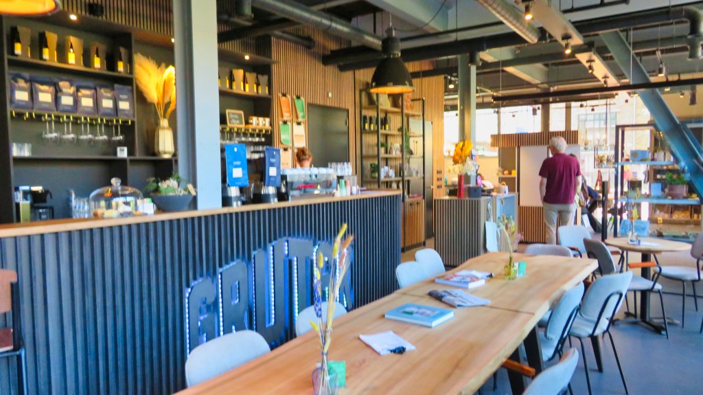 Bij Koffiebar Grutsk, wat ‘trots’ betekent in het Fries, geniet ik van een Latte Macchiato. Deze koffiebar werkt samen met lokale helden en staat voor eerlijkheid, openheid en duurzaamheid