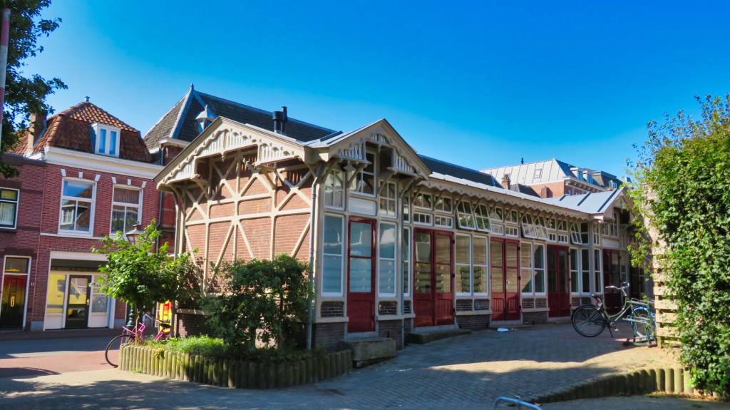 Een verrassende kijkpunt van mijn wandeling is wel de Kegelbaan aan de 2e Binnenvestgracht. Achter de lange muur achter café restaurant van der Werff zit een heuse kegelbaan. De baan uit 1897 is ontworpen door W.C. Mulder en is nog steeds in gebruik. Ik kijk even door de glasdeuren naar binnen en zie een houten kegelbaan, kegelballen en kegels.